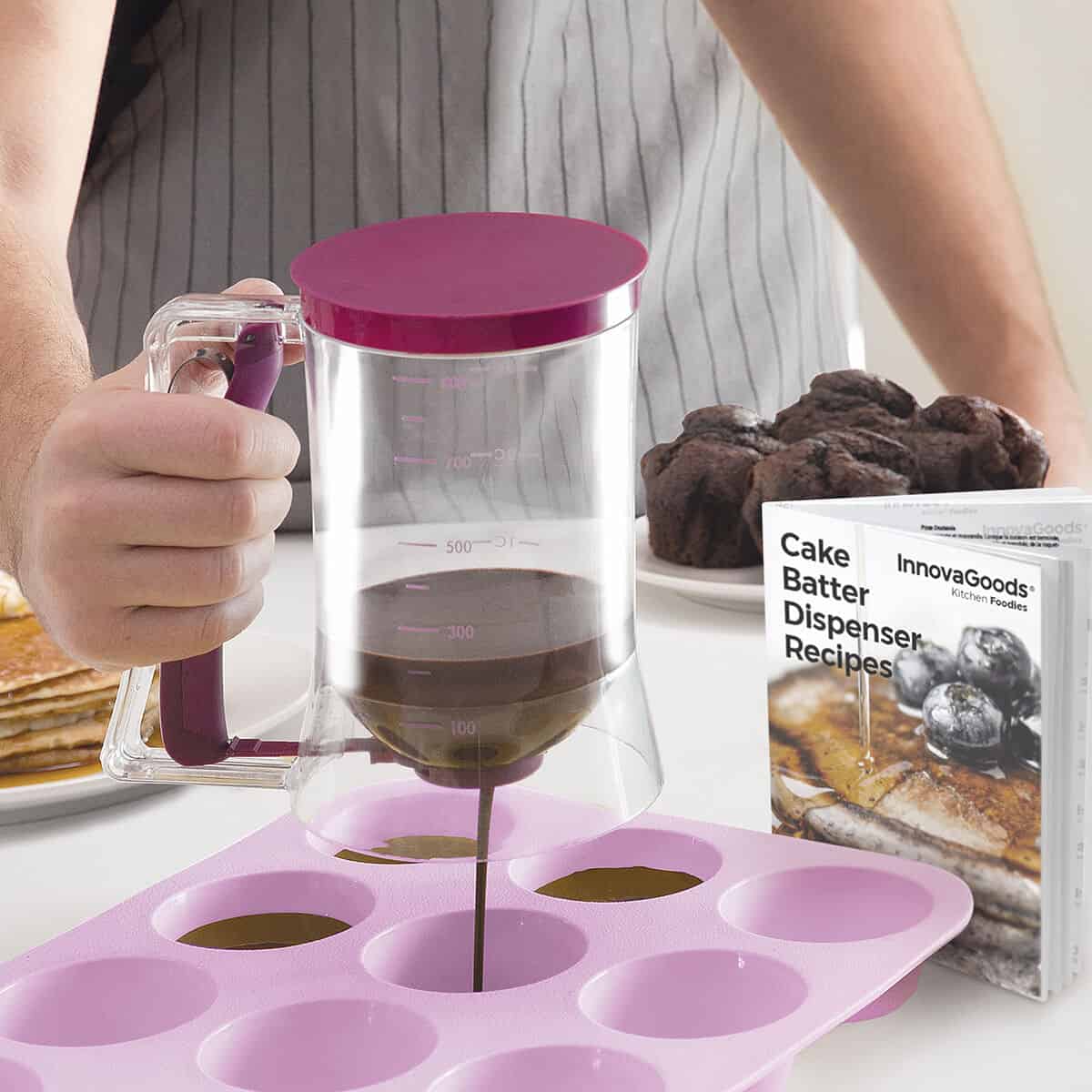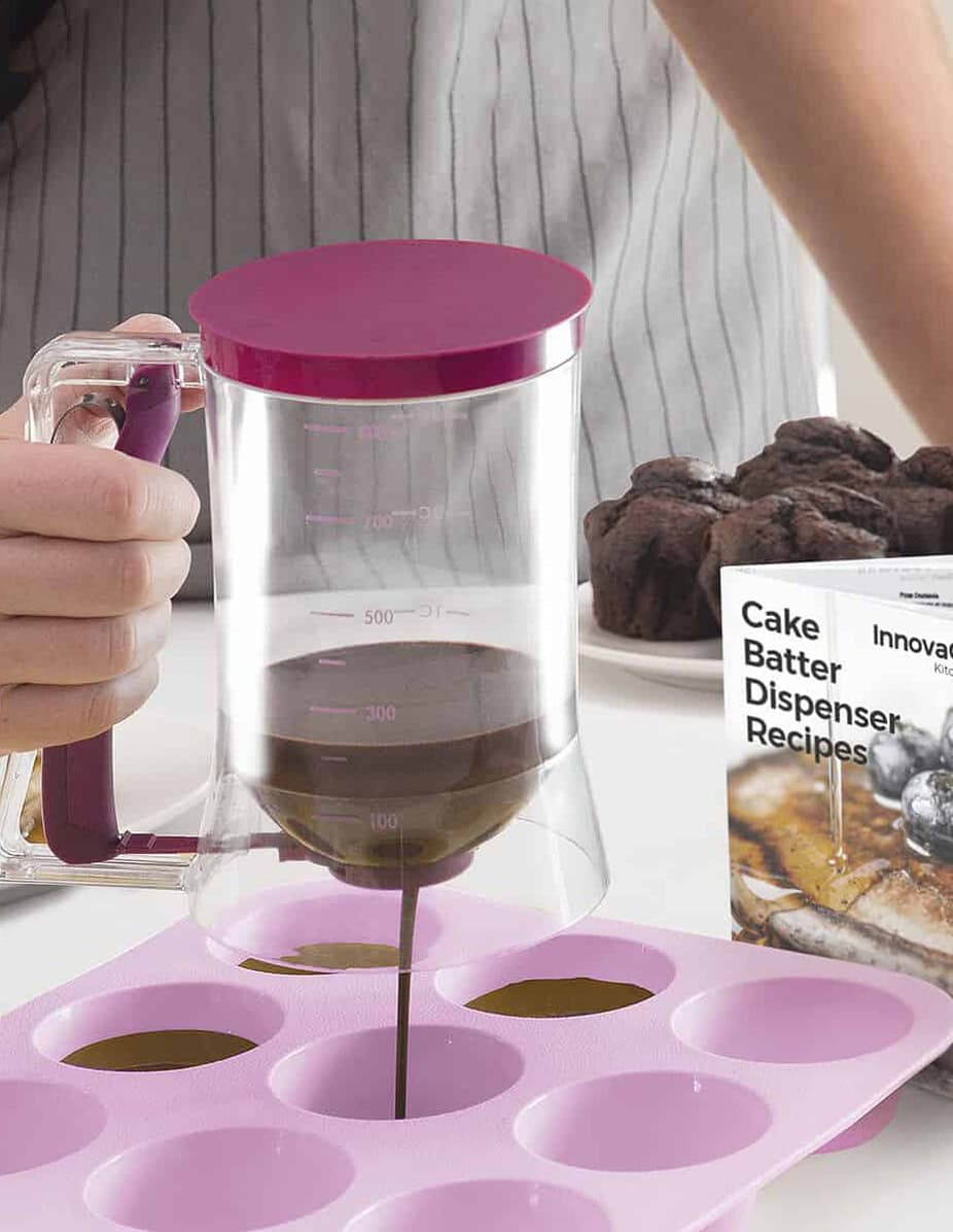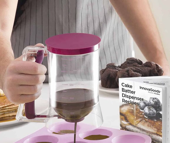A great invention that greatly facilitates the preparation of pastry products (cakes, cakes, muffins, pancakes, muffins, etc.). Its original design allows to dispense the ingredients comfortably with a simple and light pressure on the handle. A simple and clean method for the most creative confectioners! In addition, it includes a recipe book with the most delicious pastries.