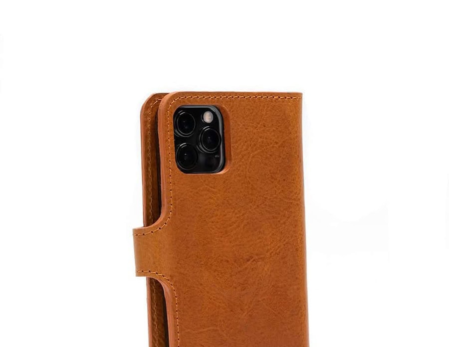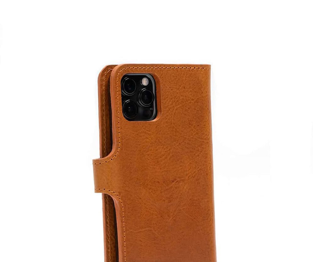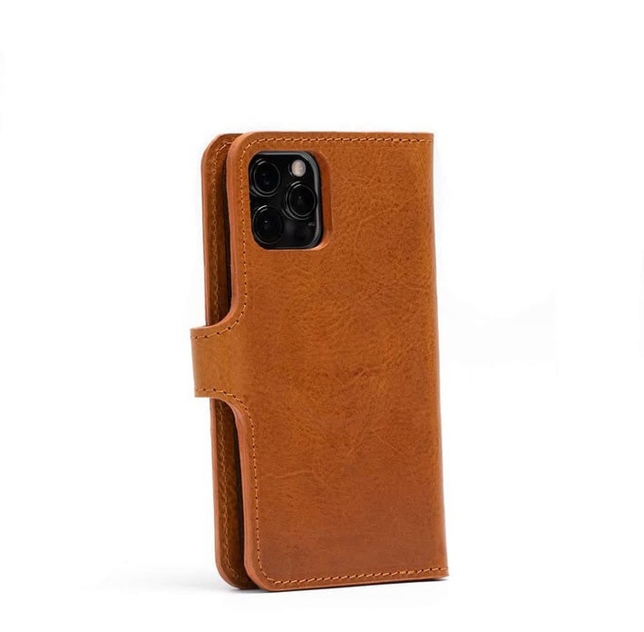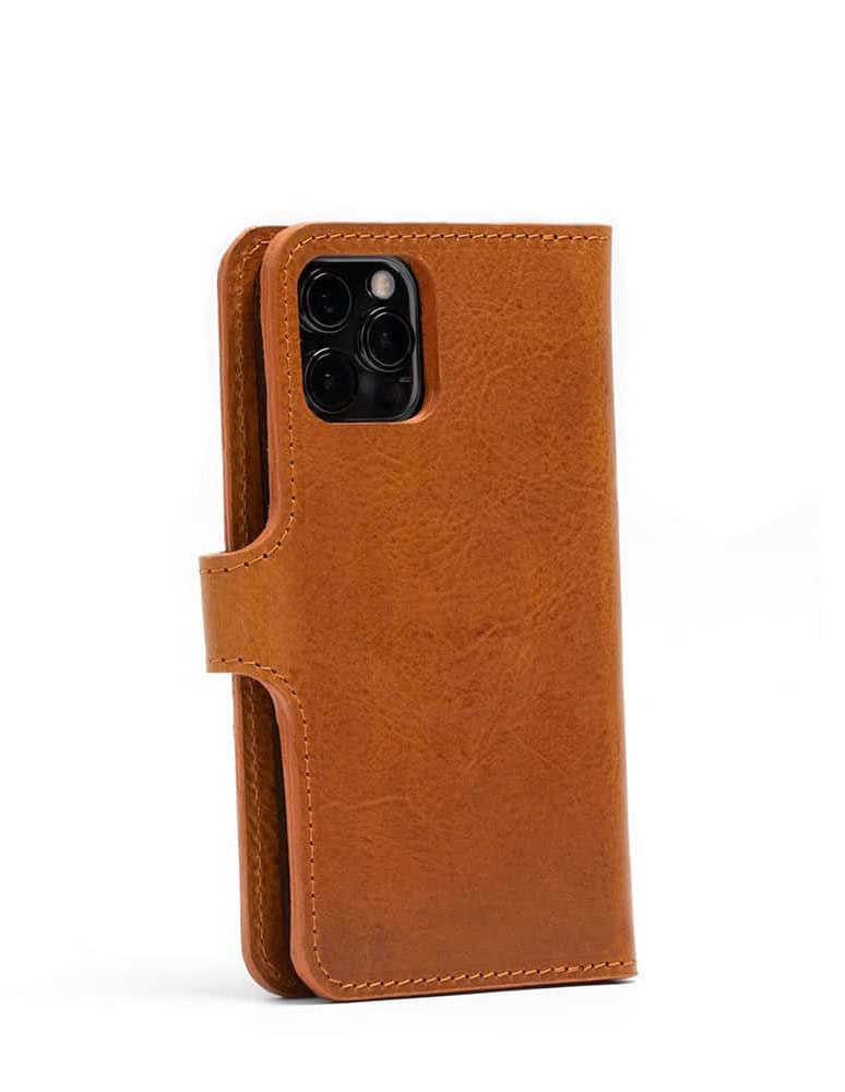 This leather folio case for iPhone with MagSafe is handcrafted from premium full-grain vegetable-tanned leather sourced from an Italian tannery.