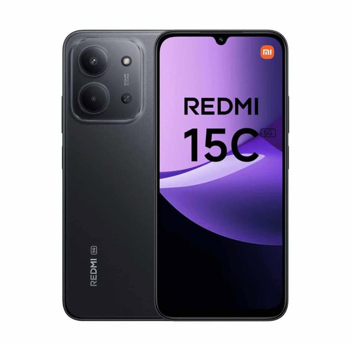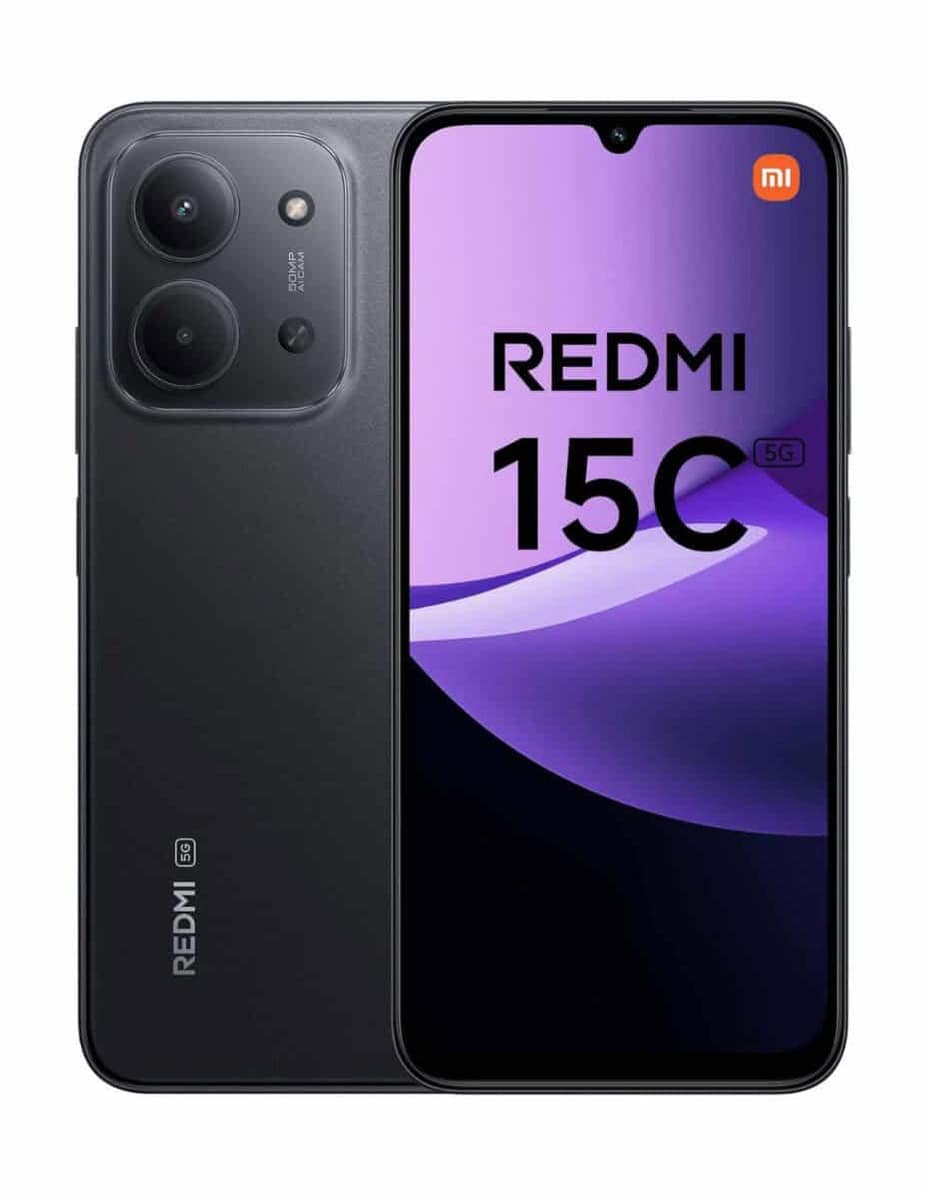 The Xiaomi REDMI 15C 5G smartphone in black is designed for users seeking a balanced 5G phone in terms of display, performance, and battery life, with a large 6.9″ flat screen featuring FHD+ resolution (2340 x 1080 px) and adaptive refresh rate up to 120 Hz, delivering smooth viewing when scrolling menus, browsing, or playing multimedia content; its peak brightness of around 700 cd/m² and 1200:1 contrast ratio help maintain readability in different environments. Inside, it includes an Octa Core MediaTek Dimensity 6300 processor up to 2.4 GHz with LPDDR4X memory, combined with 4 GB or 8 GB of RAM, allowing stable handling of everyday apps, social networks, and multitasking, while its 256 GB of internal storage provide ample space for photos, videos, and apps, expandable via MicroSD card up to 2 TB for those who need more capacity. Battery life is covered by a 6000 mAh battery, aimed at delivering long hours of use, with reference values of up to 9 hours of intensive use and up to 14 hours in more moderate scenarios, compatible with 33 W fast charging via USB‑C port, significantly reducing charging time; some batches may list 7000 mAh as a theoretical maximum value, but the main operating figure is 6000 mAh. For photography, the phone has a triple rear camera system with a 50 MP main sensor and approximate f/1.8 aperture, focused on capturing detailed images in various lighting conditions, supported by a secondary camera and AI modes, while the 8 MP front camera enables clear video calls and selfies. In terms of connectivity, it offers 5G, 4G/WCDMA, Bluetooth 5.1, NFC, Wi‑Fi, GPS with support for Glonass and BeiDou, plus Dual SIM, useful for combining personal and work lines; it also includes a 3.5 mm jack for wired headphones and comes with an AC adapter with EU plug and a protective case for initial protection. The sensor setup includes an accelerometer, proximity sensor, ambient light sensor, fingerprint reader, and facial recognition, offering several secure unlock options, while IP64 certification adds basic protection against dust and light splashes; the Android operating system with Xiaomi’s interface provides access to most current apps and services. Thanks to this mix of large screen, high‑capacity battery, complete connectivity, and generous storage, the Xiaomi REDMI 15C 5G stands out as a very capable smartphone for everyday multimedia use and intensive browsing.