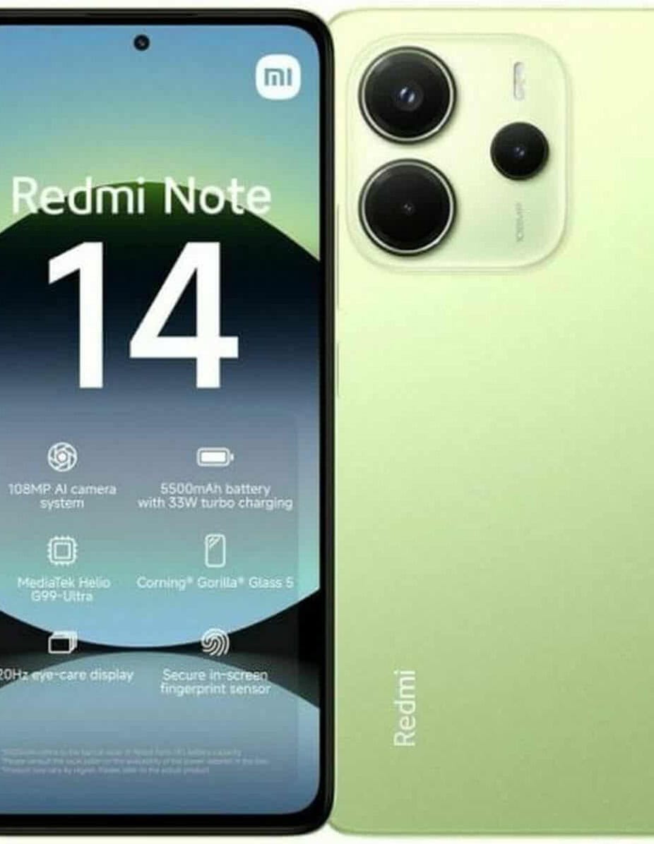 The Xiaomi Redmi Note 14 smartphone in green offers a very complete configuration for daily and multimedia use, combining a large display with high storage capacity and long battery life. It features a 6.67″ flat AMOLED display with 2400 x 1080 px resolution and a 120 Hz refresh rate, designed for smooth viewing in games, video and browsing, with good colour reproduction and sharpness. Inside it integrates a MediaTek 8‑core (Octa Core) processor with 6 GB LPDDR4X RAM, a suitable combination to run Android apps, multitasking and entertainment content with good responsiveness. For storage, it stands out by offering up to 1 TB capacity with support for MicroSD (TransFlash) card, plus 128 GB SSD versions, allowing you to save a large number of photos, videos and files without major limitations. The camera system consists of a triple rear camera with a 108 MP main sensor and f/1.7 aperture, supported by 2 MP auxiliary sensors, and a 20 MP front camera for clear selfies and video calls; the setup is backed by facial recognition and various photo modes. Battery life is provided by a 5500 mAh battery with 33 W fast charging, which restores power quickly and supports intensive all‑day use; an AC adapter, EU plug and protective case are included in the box according to the attribute list. For connectivity, it offers 4G, Wi‑Fi, Bluetooth 5.3, NFC, positioning via GPS, Glonass and BeiDou, plus USB‑C and a 3.5 mm jack for headphones, providing a versatile solution for both data and audio. Integrated sensors include accelerometer, gyroscope, proximity sensor, ambient light sensor, infrared sensor and fingerprint reader, along with IP54 splash and dust resistance for extra protection in daily use. Its approximate weight of 200 g and plastic construction in bar format help keep it well balanced in the hand, while the Android in Spanish operating system provides a familiar experience compatible with the main applications. Overall, this model is positioned as a well‑balanced smartphone that combines a large screen, good battery life and very generous storage for demanding general use.